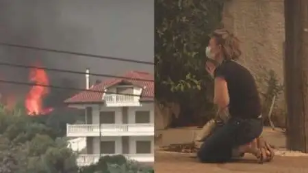 Εικόνα πολέμου στην Πάρνηθα: Γυναίκα προσεύχεται βλέποντας τις φλόγες να πλησιάζουν το σπίτι της