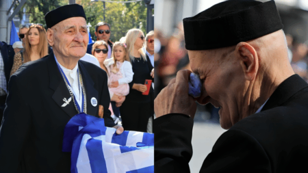 Ο ηλικιωμένος που συγκίνησε στην παρέλαση της Λάρισας – Κρατώντας την ελληνική σημαία, δάκρυσε την ώρα που περνούσαν οι μαθητές