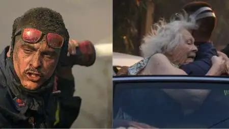 Συγκλονιστικές εικόνες: Πυροσβέστης βοηθά συνάδελφό του μέσα στις φλόγες της Πάρνηθας