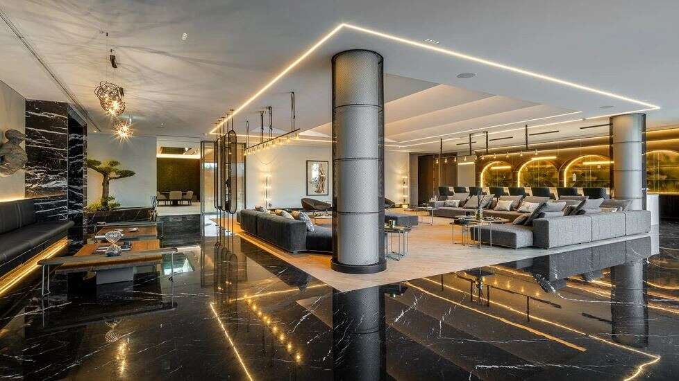 Η έπαυλη των 3.700 τ.μ. είναι σχεδιασμένη από το βραβευμένο αρχιτεκτονικό γραφείο XBD Interiors και διαθέτει ιδιωτικό γυμναστήριο, αίθουσα μουσικής με ηχομόνωση και κελάρι κρασιών. Έχει επίσης δωμάτιο για μασάζ, σάουνα και βιβλιοθήκη.