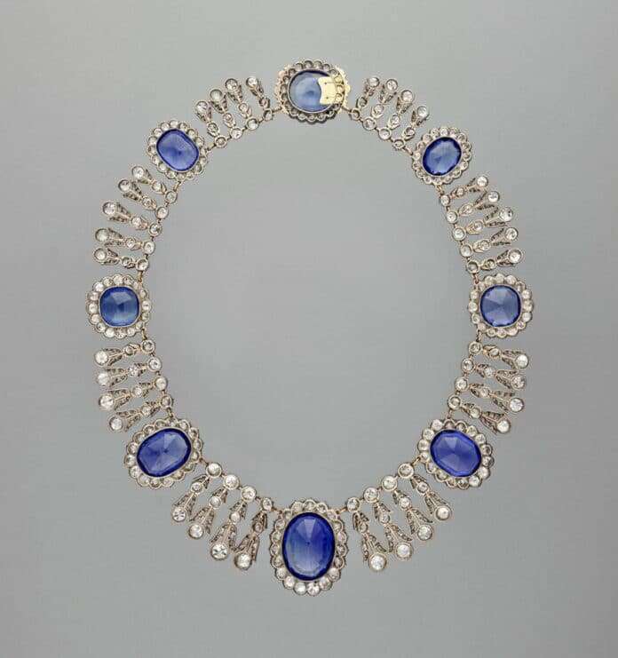 Το κολιέ από το σετ με ζαφείρια της βασίλισσας Μαρίας Αμαλίας και της βασίλισσας Ορτάνς:
