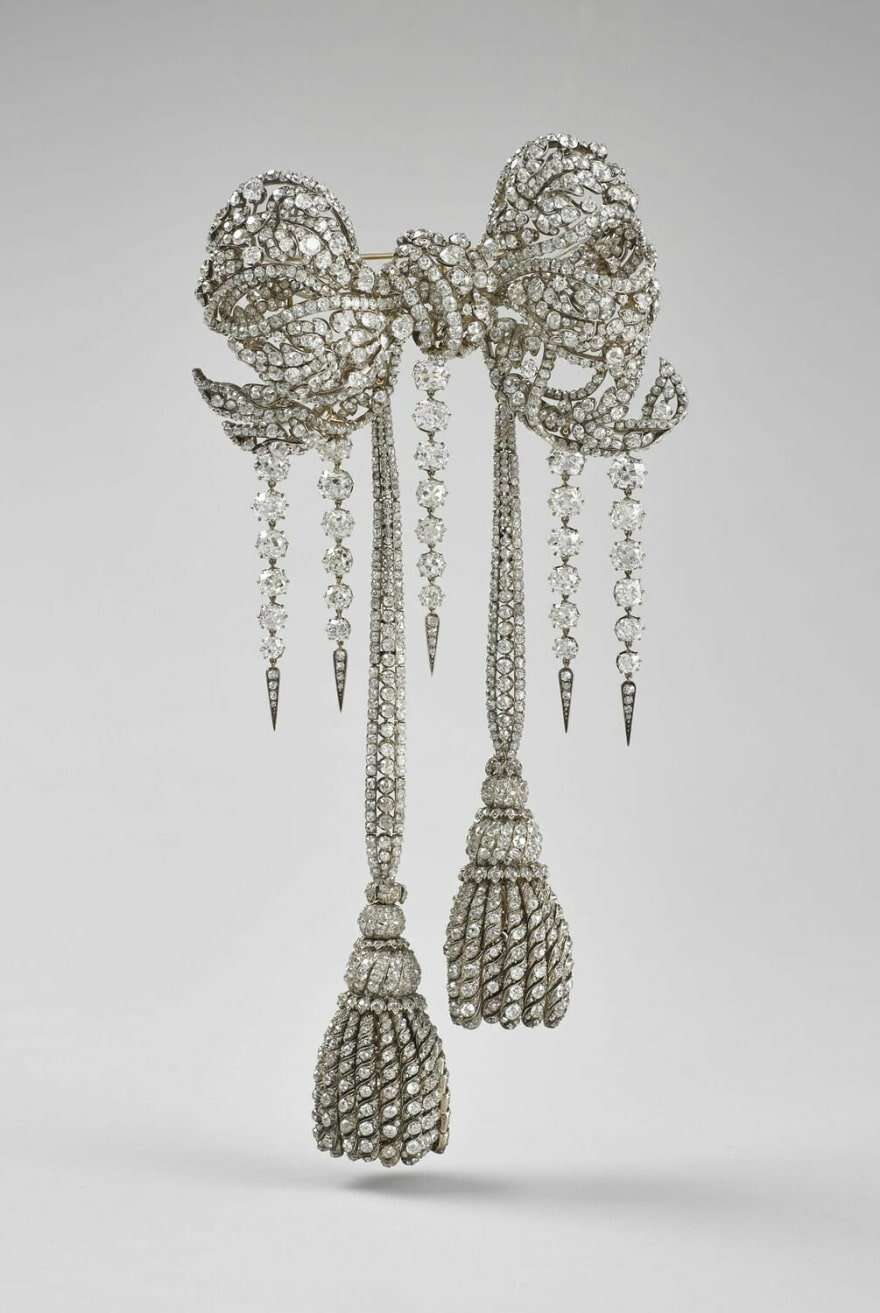 Η συγκεκριμένη καρφίτσα φιόγκος έχει 2.634 διαμάντια και αγοράστηκε από το μουσείο του Λούβρου για 6,72 εκατομμύρια ευρώ. Πριν από την απόκτησή του το 2008, βρισκόταν σε ιδιωτική συλλογή στις ΗΠΑ.