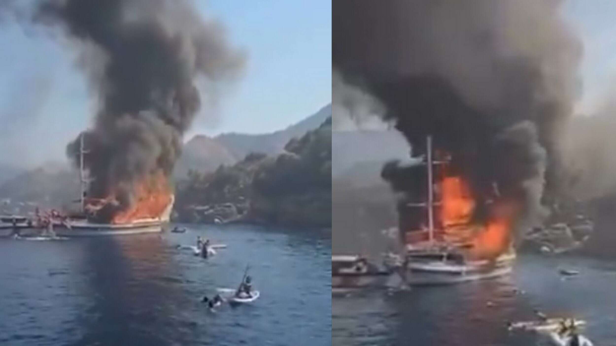 Yacht carrying tourists caught fire in Marmaris, Turkey