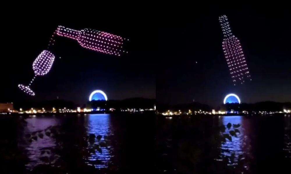 Σε έναν απόλυτα συγχρονισμένο «χορό» τα drone σχημάτισαν ένα μπουκάλι και ένα ποτήρι κρασιού αναπαράγοντας μια εικόνα σερβιρίσματος.