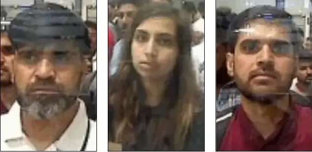Ο Urfan Sharif, 41, (αριστερά) η σύντροφός του Beinash Batool, 29, (κέντρο) και ο αδελφός Faisal Malik, 28, (δεξιά) απεικονίζονται στο αεροδρόμιο Sialkot στο Ντουμπάι. Και οι τρεις προφυλακίστηκαν για να εμφανιστούν στο δικαστήριο του Γκίλφορντ αργότερα σήμερα