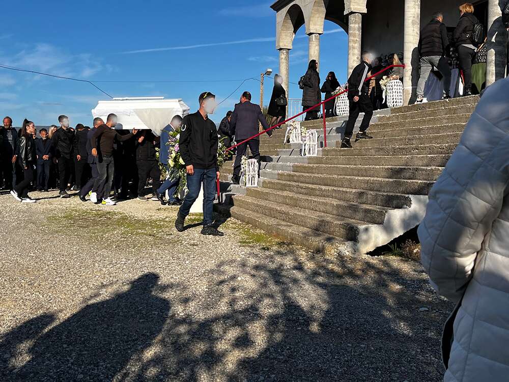 Λίγο πριν τις τρεις το μεσημέρι το λευκό φέρετρο με την σορό της 18χρονης, πέρασε την θύρα της εκκλησίας, για την τέλεση της νεκρώσιμης ακολουθίας. Τραγικές φιγούρες, οι γονείς της, τα δυο αδέλφια της, οι φίλοι και συμμαθητές της άτυχης κοπέλας που τόσο άδικα και βίαια κόπηκε το νήμα της ζωής της, πριν προλάβει να την ζήσει…