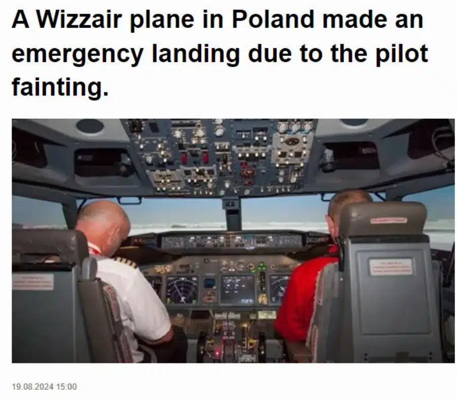 Αιτία της έκτακτης προσγείωσης ήταν η λιποθυμία του πρώτου πιλότου καθώς το αεροπλάνο βρισκόταν στον αέρα.