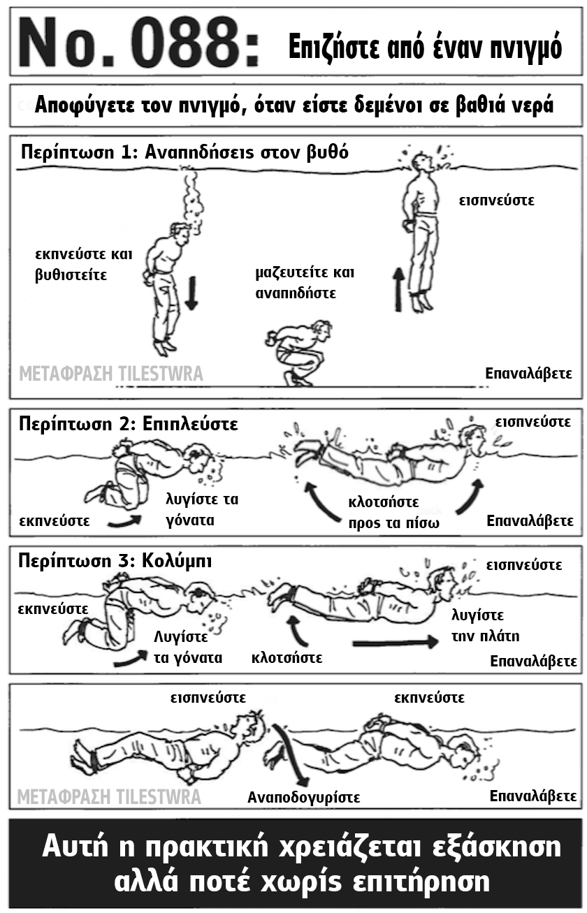 «Όταν ένας στρατιωτικός συλλαμβάνεται σε εχθρικό έδαφος, οι πιθανότητες επιβίωσης είναι λίγες. Αντί να τον παραπέμψουν σε δίκη, μπορεί απλά να τον «εξαφανίσουν.” Για αυτόν ακριβώς τον λόγο όλοι οι στρατιώτες μαθαίνουν πως να δραπετεύουν, όταν έχουν τα χέρια και τα πόδια τους δεμένα. Οι καλά εκπαιδευμένοι στρατιώτες μπορούν να επιβιώσουν με τα χέρια και τα πόδια τους δεμένα μέσα στο νερό, μέχρι να τους βρουν ή να βγουν στην στεριά.”