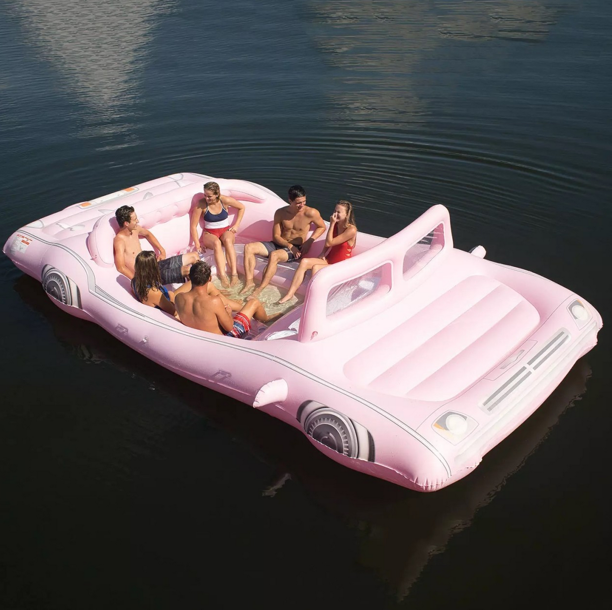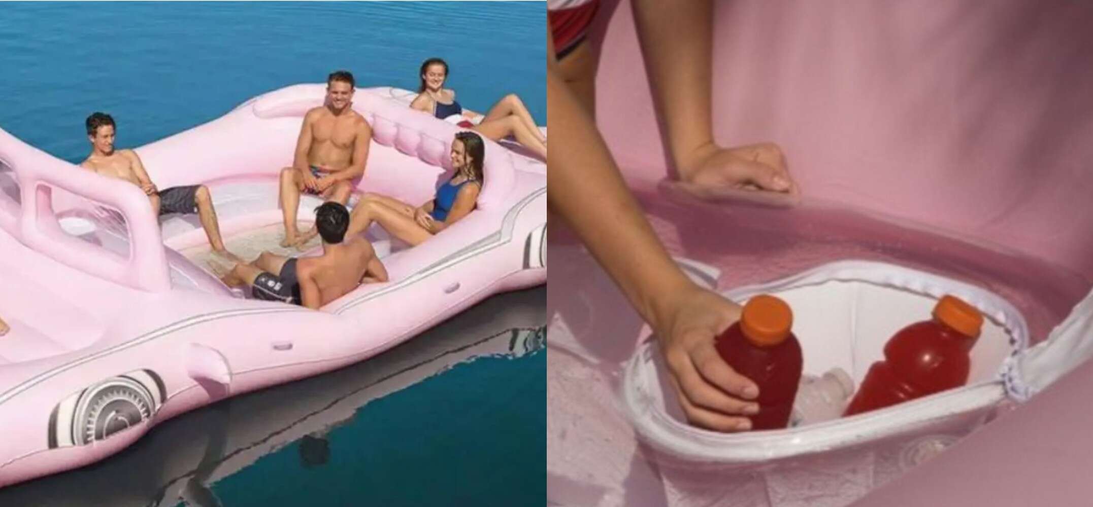 Παρόλο που υπάρχουν πολλά μέρη για να καθίσετε και αράξετε στο φουσκωτό νησί σας, στο “καπό” και στο “πορτ μπαγκάζ” υπάρχει χώρος για να ξαπλώσετε και να απλωθείτε. Τώρα το μόνο που χρειάζεται να κάνετε είναι να παραγγείλετε το Retro Pink Limo Island στο Sam’s Club για 199,98 $ και τα καλοκαιρινά σας σχέδια είναι έτοιμα να τεθούν σε δράση.