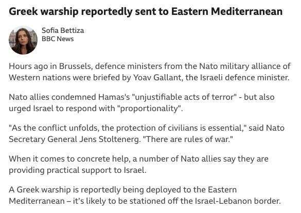 Λίγες ώρες αφότου οι υπουργοί Άμυνας του ΝΑΤΟ ενημερώθηκαν από τον Yoav Gallant, τον Ισραηλινό υπουργό Άμυνας, για την εξέλιξη του πολέμου του Ισραήλ με τη Χαμάς.