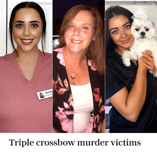 Η 61χρονη Κάρολ Χαντ και οι δύο κόρες της, 25 και 28 ετών, βρέθηκαν δολοφονημένες από βαλλίστρα στο σπίτι τους, στην αξίας 800.000 λιρών μονοκατοικία τους στο Μπούσι, στο Χερτφορντσάιρ, χθες το βράδυ.
