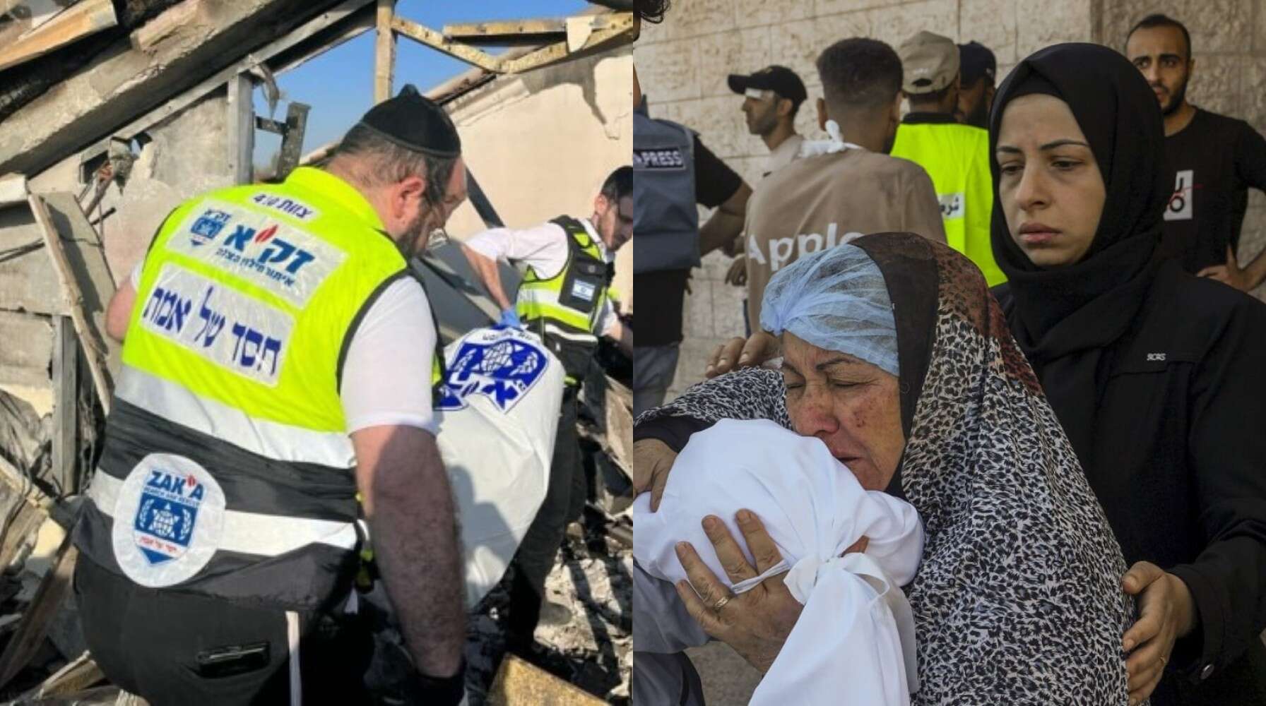 Ο Ισραηλινός δημοσιογράφος Hallel Bitton Rosen δημοσίευσε μια φωτογραφία στην πλατφόρμα X (πρώην Twitter) με εθελοντές της Zaka να βγάζουν τη σορό του αγοριού, τυλιγμένη, από τα ερείπια. Φαίνεται πως ήταν περίπου 5 ετών.