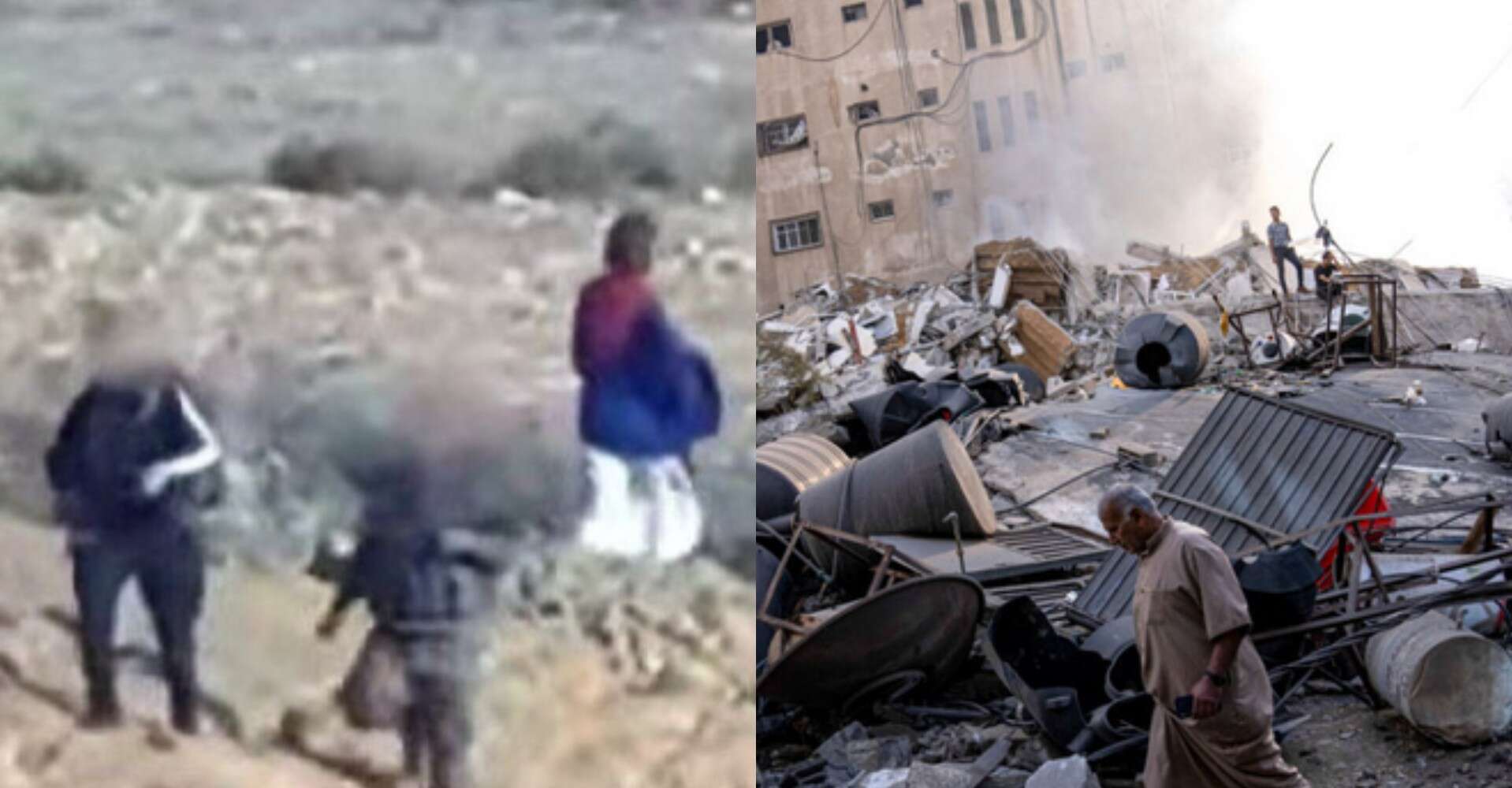 Σε βίντεο που μεταδόθηκε από το παλαιστινιακό τηλεοπτικό δίκτυο Al Aqsa, διακρίνονται μια γυναίκα και δύο παιδιά να συνοδεύονται από τρία μέλη της Χαμάς σε μια περιφραγμένη περιοχή (φαίνεται να είναι ο φράχτης των συνόρων της Γάζας), κατά τη διάρκεια της ημέρας.