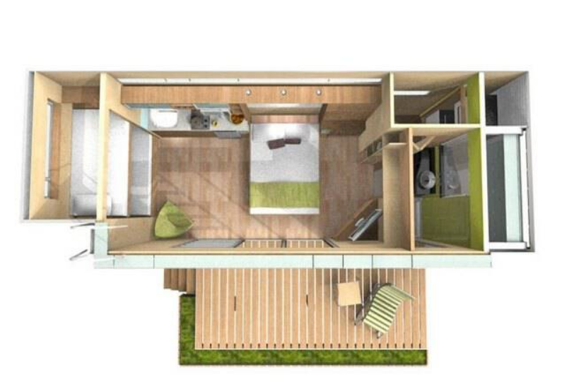 Αν και το εσωτερικό του κοντέινερ δεν είναι μεγάλο, είναι αρκετά όμορφο και λειτουργικό. Απλά δείτε τα ξύλινα πατώματα!