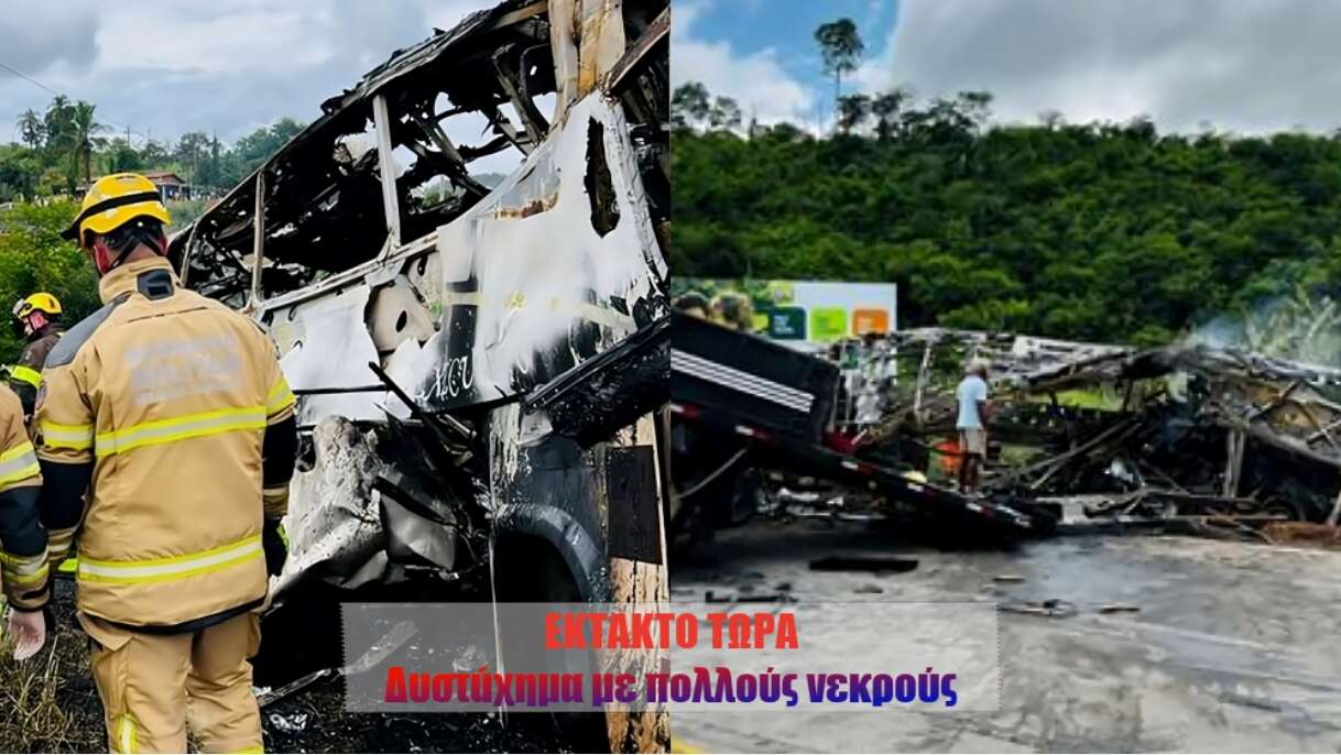 Οι πυροσβέστες ανέκτησαν 22 πτώματα από το λεωφορείο, και περισσότερα θύματα ακόμη θα απομακρυνθούν”, είπε ο πυροσβέστης Αλόνσο Βιέιρα Τζούνιορ σε βίντεο που δημοσιοποίησε η πυροσβεστική υπηρεσία.