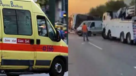 Οδηγός φορτηγού που κουβαλούσε άμμο έχασε τον έλεγχο του οχήματός του, έσπασε τις προστατευτικές μπάρες, μπήκε στο αντίθετο ρεύμα και έπεσε πάνω σε πούλμαν στο οποίο επέβαιναν 48 άτομα.