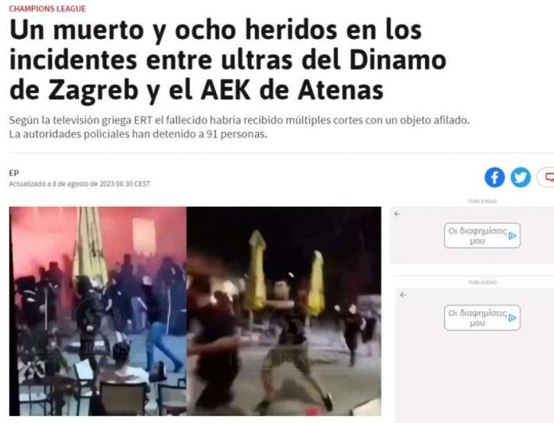 AS (Ισπανία): Ένας νεκρός και οκτώ τραυματίες στα επεισόδια ανάμεσα σε οπαδούς της Ντιναμό Ζάγκρεμπ και της ΑΕΚ