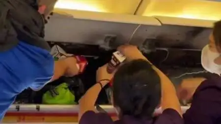 Κατά τη διάρκεια του ταξιδιού, ξέσπασε πυρκαγιά στην καμπίνα των επιβατών λόγω της οποίας αναγκάστηκε να εκτραπεί η πτήση προς τη Φουτσόου. Σύμφωνα με δημοσίευμα του Reuters, μέχρι στιγμής δεν είναι γνωστή η αιτία της πυρκαγιάς, ενώ την ίδια ώρα τοπικά ΜΜΕ υποστηρίζουν ότι η φωτιά ξέσπασε λόγω ενός… power bank.