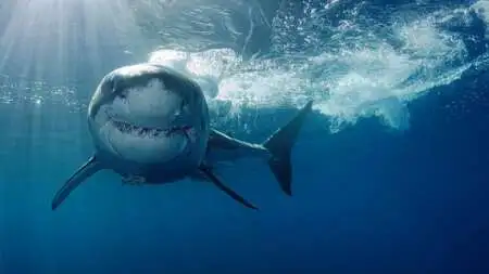 Στα πλάνα φαίνεται το αιχμηρό πτερύγιο του καρχαρία να κόβει τα κύματα, καθώς κατευθύνεται κατευθείαν προς την ακτή, κάνοντας τους λουόμενους να ουρλιάζουν έντρομοι.